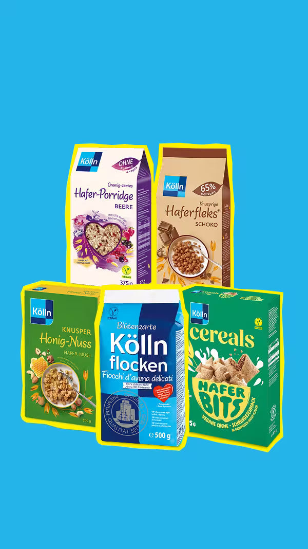Jeden Tag gibst du alles – für dich, für andere, für das, was dir wichtig ist. Und genau dafür gibt’s Kölln! Ehrliche Zutaten, voller Geschmack und nachhaltiger Hafergenuss – ohne Kompromisse. Unsere Produkte begleiten dich: Ganz egal, ob du in den Tag startest, nach einem langen Tag auftankst oder zwischendurch neue Energie brauchst.