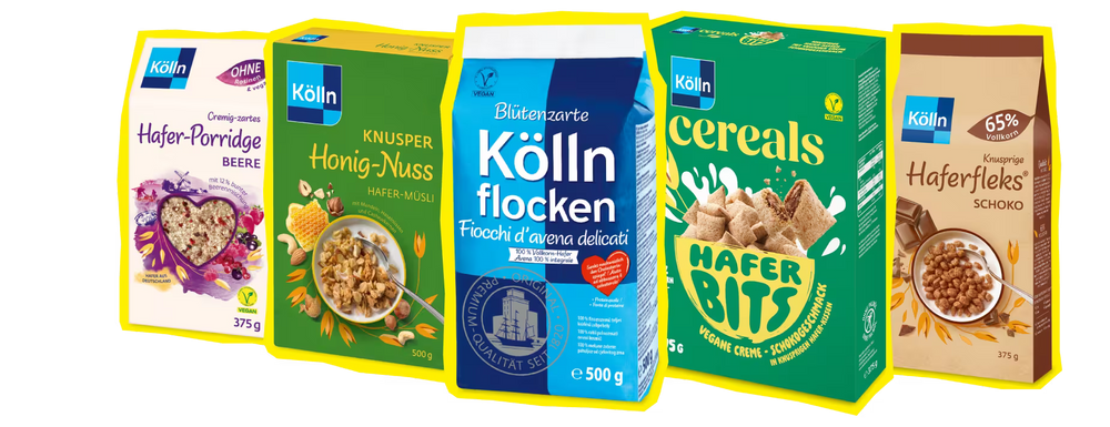 Besonders große Haferkerne werden direkt zu Echte Kölln Kernige (kernige Struktur = Großblattflocken) flockiert. Etwas kleinere Haferkerne werden zu Grütze geschnitten und ergeben Blütenzarte Köllnflocken (zarte Struktur = Kleinblattflocken). Gemahlene Haferkerne (Hafervollkornmehl) werden zu leicht löslichen Kölln Instant Haferflocken und Kölln Schmelzflocken® verarbeitet.