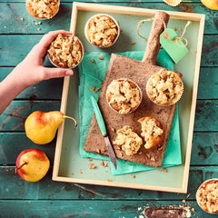 2Für die Streusel alle Zutaten zu groben Streuseln verarbeiten. Streusel auf den Muffins verteilen und die Muffins goldbraun backen. Zubereitungszeit: ca. 45 Minuten
