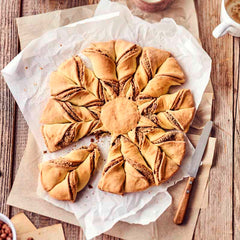 2Den Teig 8 – 10 Minuten geschmeidig kneten, sodass er sich am Ende der Knetzeit vom Schüsselboden löst. Anschließend zugedeckt an einem warmen Ort etwa 60 Minuten gehen lassen. In der Zwischenzeit die Kölln Multikorn Fleks® in einen Gefrierbeutel geben und mit einem Nudelholz zerkleinern. Die Haselnüsse in einer Pfanne, ohne Fett, leicht anrösten und anschließend mit den zerstoßenen Kölln Multikorn Fleks® und Zucker und Zimt vermengen.