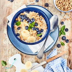 2Heidelbeeren verlesen, Banane schälen und in Scheiben schneiden. Zu den Haferflocken geben und den Haferdrink dazugießen. Zubereitungszeit: ca. 10 Minuten