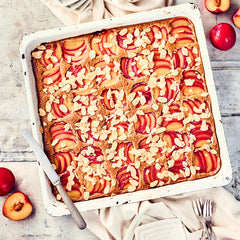 2Die Pflaumenstücke auf den Kuchen verteilen und backen.