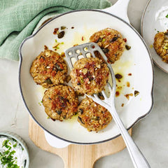 2Mazola® in einer Pfanne bei mittlerer Temperatur erhitzen. Bratlinge formen und unter mehrmaligem Wenden in der Pfanne 4 - 5 Minuten knusprig braun braten. Heiß servieren. Zubereitungszeit: ca. 30 Minuten Tipp: Serviere die Bratlinge mit einem leckeren Dip deiner Wahl.