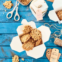 2Zucker und Mehl mischen, in die Haferflocken-Haferfleks®-Mischung geben und zusammen mit dem Wasser gut verrühren. Backofen vorheizen. Mit zwei Teelöffeln den Keksteig mit Abstand auf ein mit Backpapier ausgelegtes Backblech setzen und backen.