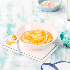 1Mango sorgfältig schälen, Fleisch vom Kern lösen und pürieren. Wasser und Kölln Multikorn-Flocken aufkochen, von der Kochstelle nehmen und 100 g Mangomus sowie Öl untermischen.