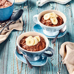 1Kakao mit Milch oder Kölln Haferdrink anrühren und Köllnflocken darin aufkochen. Banane klein schneiden und unterrühren oder zum Porridge servieren. Zubereitungszeit: ca. 15 Minuten (ohne Wartezeit)