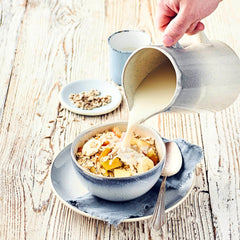 2Wenn es morgens schnell gehen muss, einfach alle trockenen Zutaten in entsprechender Menge auf Vorrat mischen und in einer gut verschließbaren Dose aufbewahren. Vor dem Verzehr je nach Lust und Saison die frischen Zutaten ergänzen.