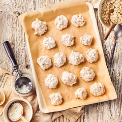 2Mit zwei Teelöffeln kleine Häufchen auf ein mit Backpapier ausgelegtes Backblech setzen und backen. Ober-/Unterhitze: 150 °C Umluft: 130 °C Backzeit: 20-30 Minuten Zubereitungszeit: ca. 15 Minuten