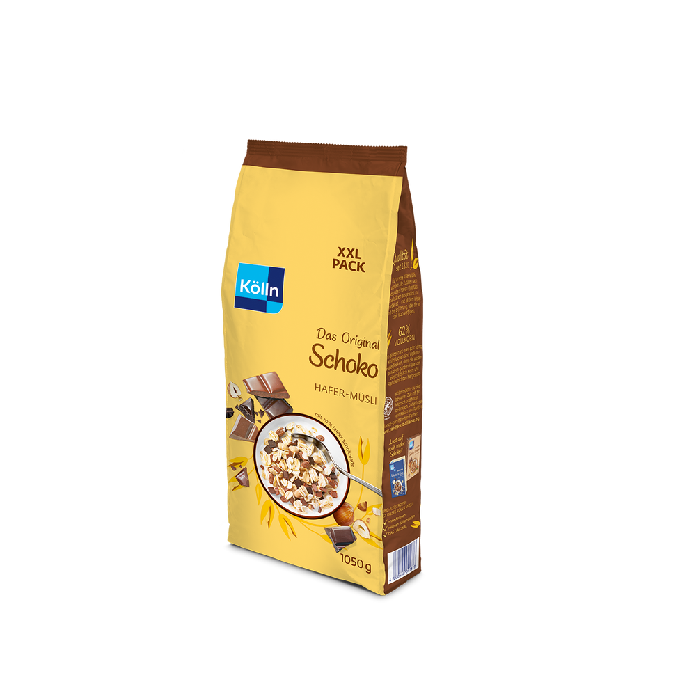 Ende der 70er hatten Kölln-Fans einen Wunsch: Mehr Kakao in unseren Köllnflocken! Das mussten wir uns natürlich nicht zweimal sagen lassen. Unser Schoko Hafer-Müsli ist ein echter Klassiker – geliebt seit Jahrzehnten und immer noch unschlagbar. Aus gutem Grund: Blütenzarte Köllnflocken und Kernige Köllnflocken bilden die perfekte Basis. Dazu kommen knusprige Vollkorn Haferfleks Schoko und feines Haselnusskrokant – für den extra Biss.